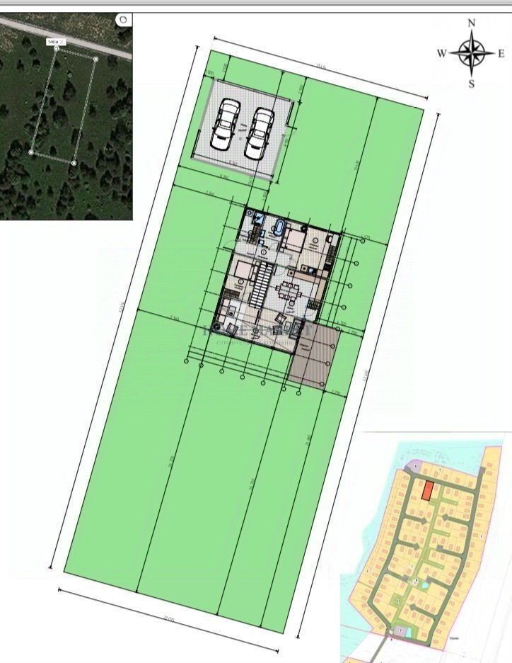 Коммуникации: электричество 15 кВт, центральные водопровод и канализация. Газ по границе.