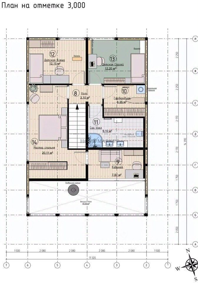 1 этаж: кухня-гостинная, 2 спальни, санузел 2 этаж:Мастер-спальня с выходом в кабинет, 2 спальни, гардеробная, санузел