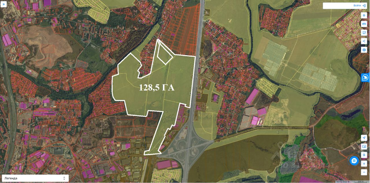 Продается земельный участок площадью 128,5 ГА, расположенный в 12 км от МКАД по Симферопольскому шоссе.