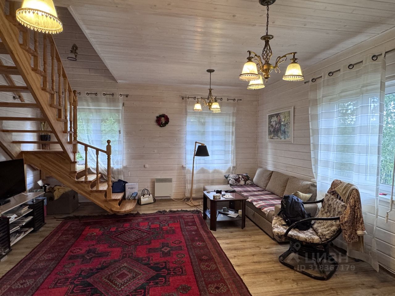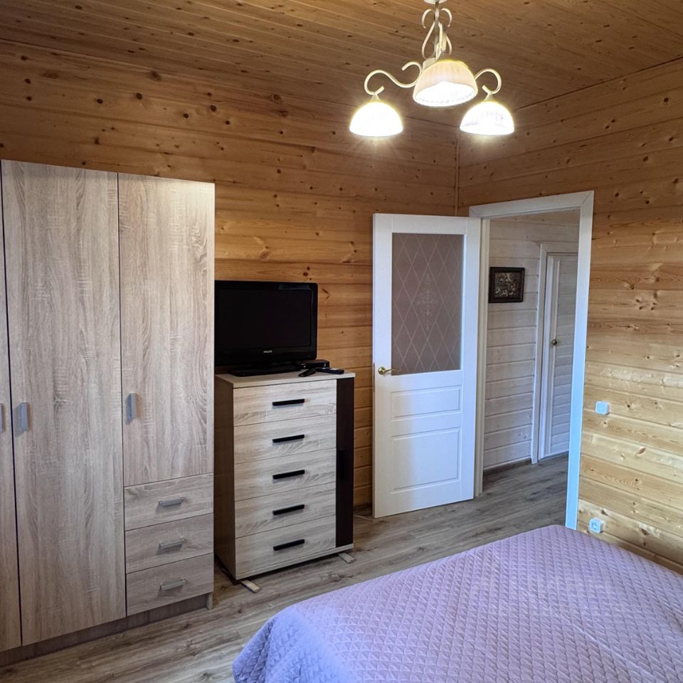 Дом для круглогодичного проживания. Электричество - трехфазное, 16 КВт. Материал стен - брус 250мм Х 250 мм. Внутри утеплитель - фольгированный пенофол, внутренняя отделка - вагонка софт-лайн. Снаружи утепление: пеноплекс, облицовка фасада искусственный камень. Отопление электрическими радиаторами. Два санузла.