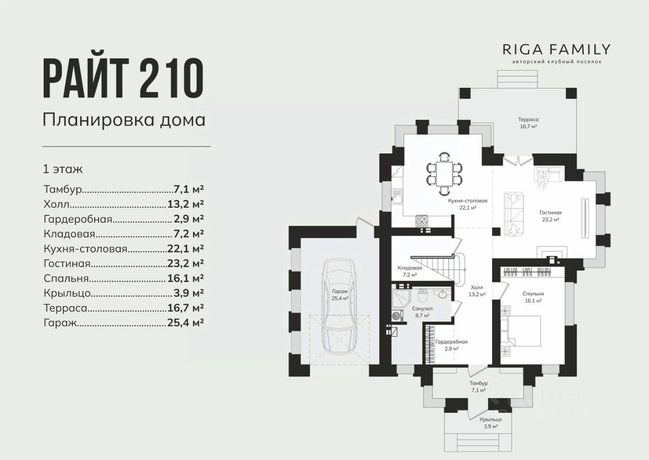 СТОИМОСТЬ ДОМА В объявлении указана стоимость дома 210 кв.м. с гаражом в черновой отделке на участке 168 размером 8,75 сот.