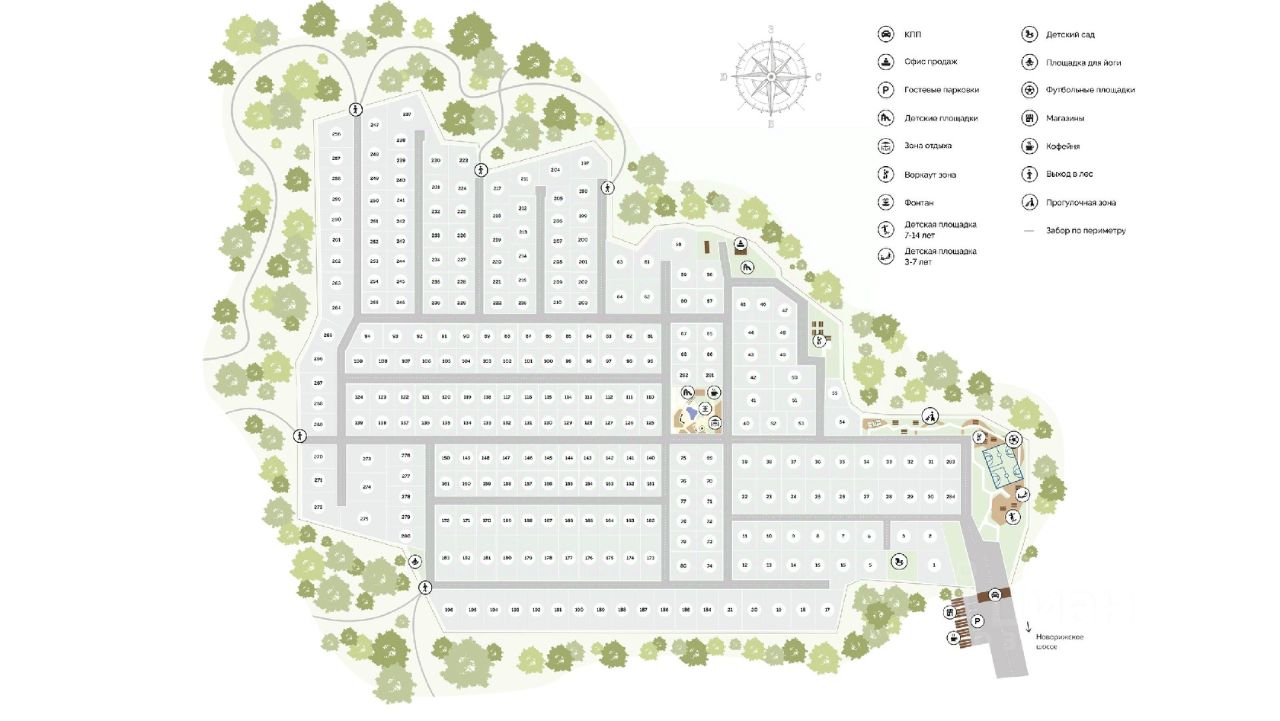 - 40 мин до МКАД по Новорижскому шоссе, - 20 мин до инфраструктуры Истры (школы, детские сады, кафе и рестораны, торговые центры и кинотеатры, банки, мед. учреждения), - Вокруг всего поселка густой вековой лес, - Общая площадь поселка 37 гектар, - Проектом предусмотрено 282 домовладения, - Широкие асфальтированные дороги, - 160 домов построено, - Единая архитектурная концепция (стиль Райт), - Парк с фонтаном на территории КП, - Спортивная площадка, - Детские игровые зоны, - Зона для йоги, - Кофейни и магазины, - КПП, круглосуточная охрана, видеонаблюдение, забор по периметру, - Гостевая парковка.
