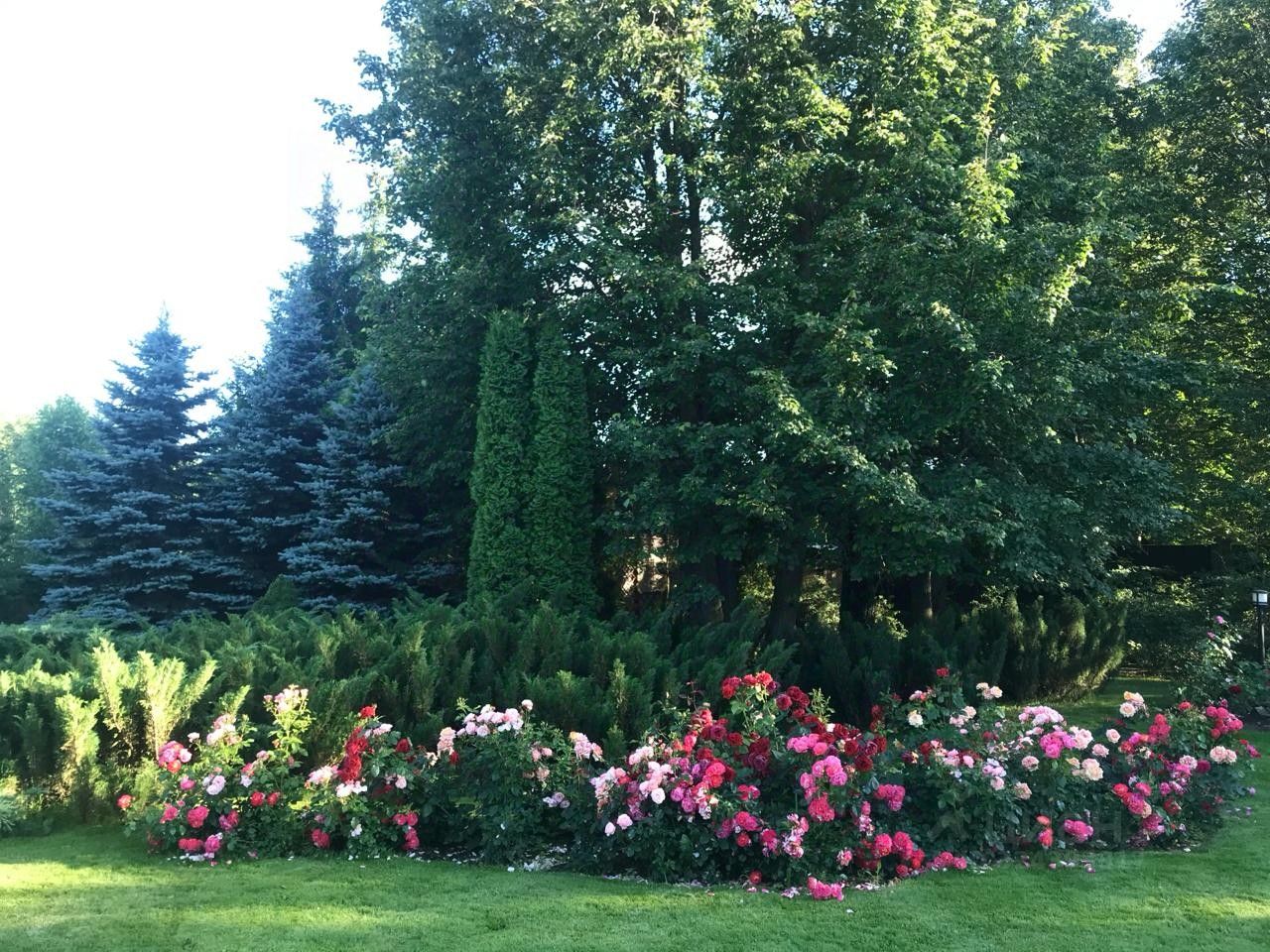 На территории организованы несколько ландшафтных зон: сад , настоящий многолетний английский газон, розарий, альпийские горки, ухоженные пруды с ивами в окружении цветников - все поддерживается в идеальном состоянии, организованы места для отдыха и наслаждения видами, достойными пера художника.