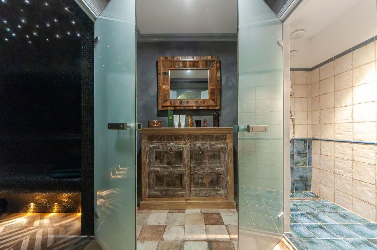 Это настоящее произведение искусства! Хвойная аллея из более чем 150 елей, есть пруд - разводится рыба для рыбалки ,на берегу беседка с мангалом, в 50 метрах от главного здания расположен уютный домик для спа-процедур( хамам , финская сауна, зона отдыха, постирочная), есть дом для персонала и отдельно стоящий гараж с подсобкой.