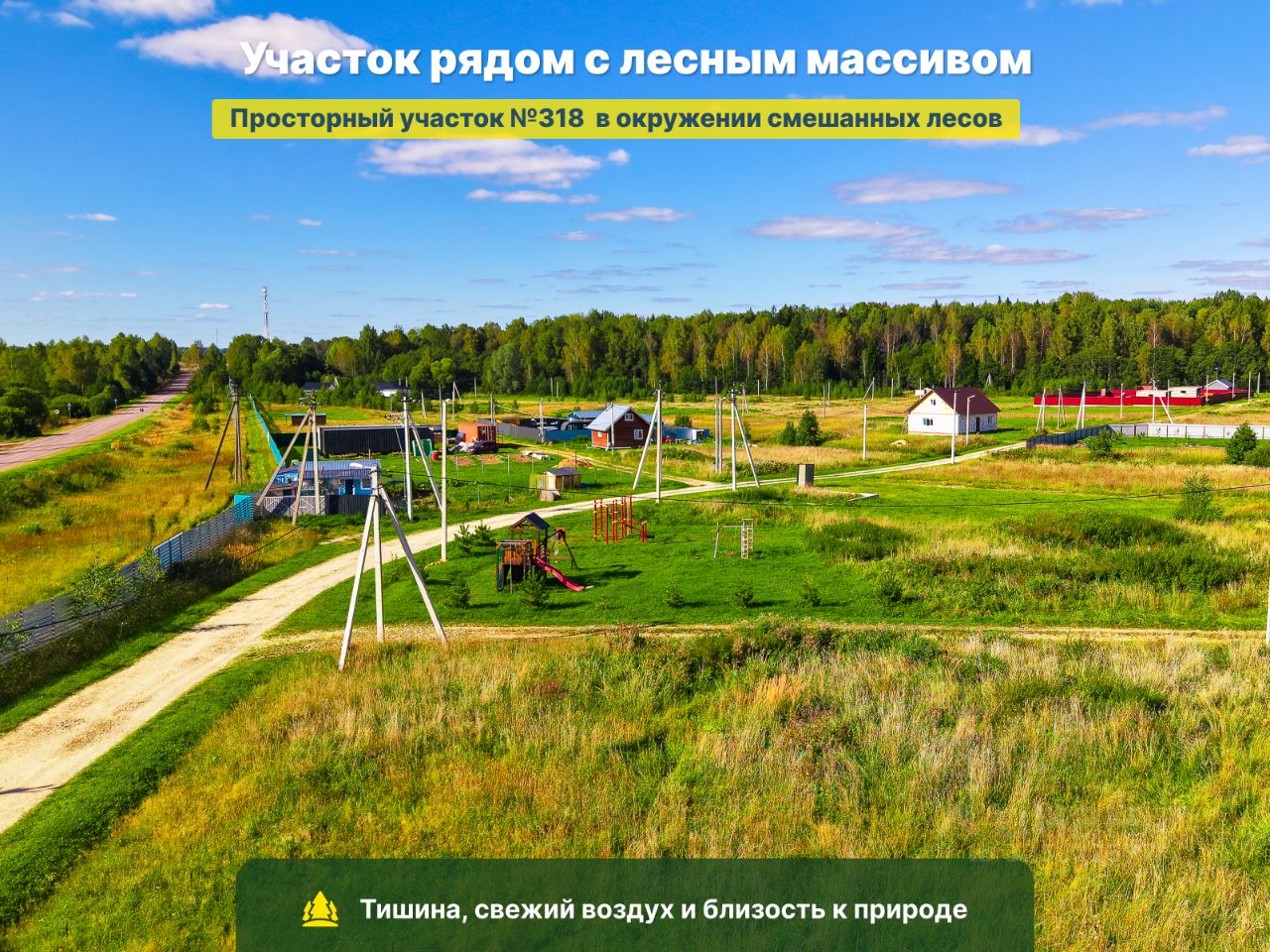 Участок 318 — это идеальное место для жизни и отдыха в окружении природы, с полной инфраструктурой и удобной транспортной доступностью!