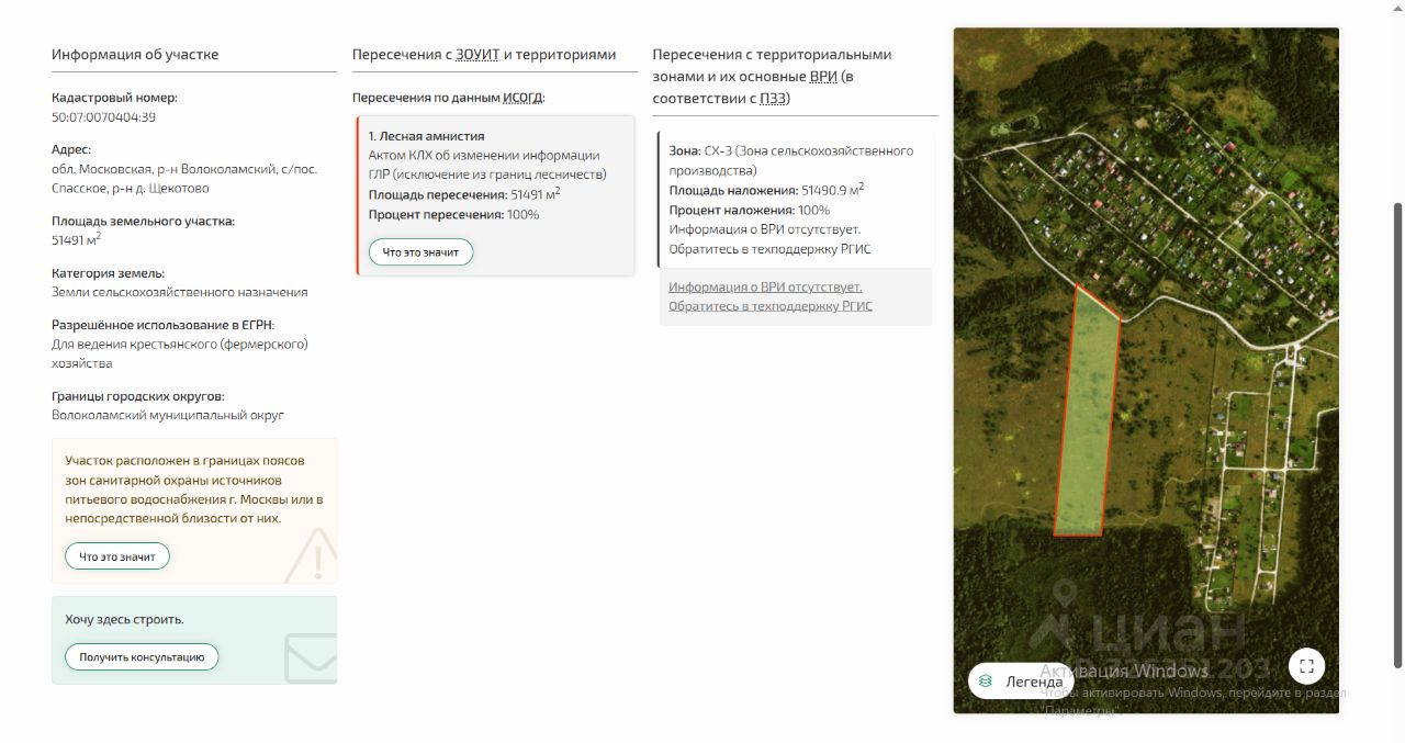 Продается сельскохозяйственный участок 5.15 га в зоне СХ-3 у деревни Щекотово Волоколамского района (121км от МКАД по Новорижскому шоссе). Кадастровый номер: 50:07:0070404:39 Координаты GPS: 55.893016, 35.814768 Участок в собственности физ.лица более 20 лет. С южной стороны участок граничит с лесом! Участок не является особо ценным, не имеет мелиораций и ЗОУИТов, зон ограничивающих использование. Вид разрешенного использования: Для ведения крестьянского (фермерского) хозяйства. Категория земли: Земли сельскохозяйственного назначения. Территориальная зона в ПЗЗ и Ген.плане: СХ-3 Территориальная зона СХ-3 предполагает следующее виды использования: Хранение и переработка сельскохозяйственной продукции 1.15, Питомники 1.17, Рыбоводство 1.13, Пчеловодство 1.12, Свиноводство 1.11, Птицеводство 1.10, Звероводство 1.9, Скотоводство 1.8, Животноводство 1.7, Выращивание льна и конопли 1.6, Виноградарство 1.5.1, Садоводство 1.5, Выращивание тонизирующих, лекарственных, цветочных культур 1.4, Овощеводство 1.3, Выращивание зерновых и иных сельскохозяйственных культур 1.2, Растениеводство 1.1, Предоставление коммунальных услуг 3.1.1, Ведение личного подсобного хозяйства на полевых участках 1.16, Научное обеспечение сельского хозяйства 1.14, Обеспечение сельскохозяйственного производства 1.18, Виды разрешенного использования из данного перечня меняется путём подачи заявления в МФЦ. Так же в Зоне СХ-3 есть условно-разрешённые виды использования: Пищевая промышленность 6.4 Охота и рыбалка 5.3 (предполагает строительство домов, соответственно, и организацию базы отдыха) Перевести в условно-разрешённые виды использования можно только путем проведения публичных слушаний.